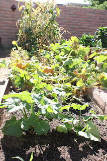 In this area we have sugar pumpkins, corn, tomatoes, acorn and butternut squash, zucchini, okra, watermelon, garlic, bell peppers, pablanos and a few remaining onions.